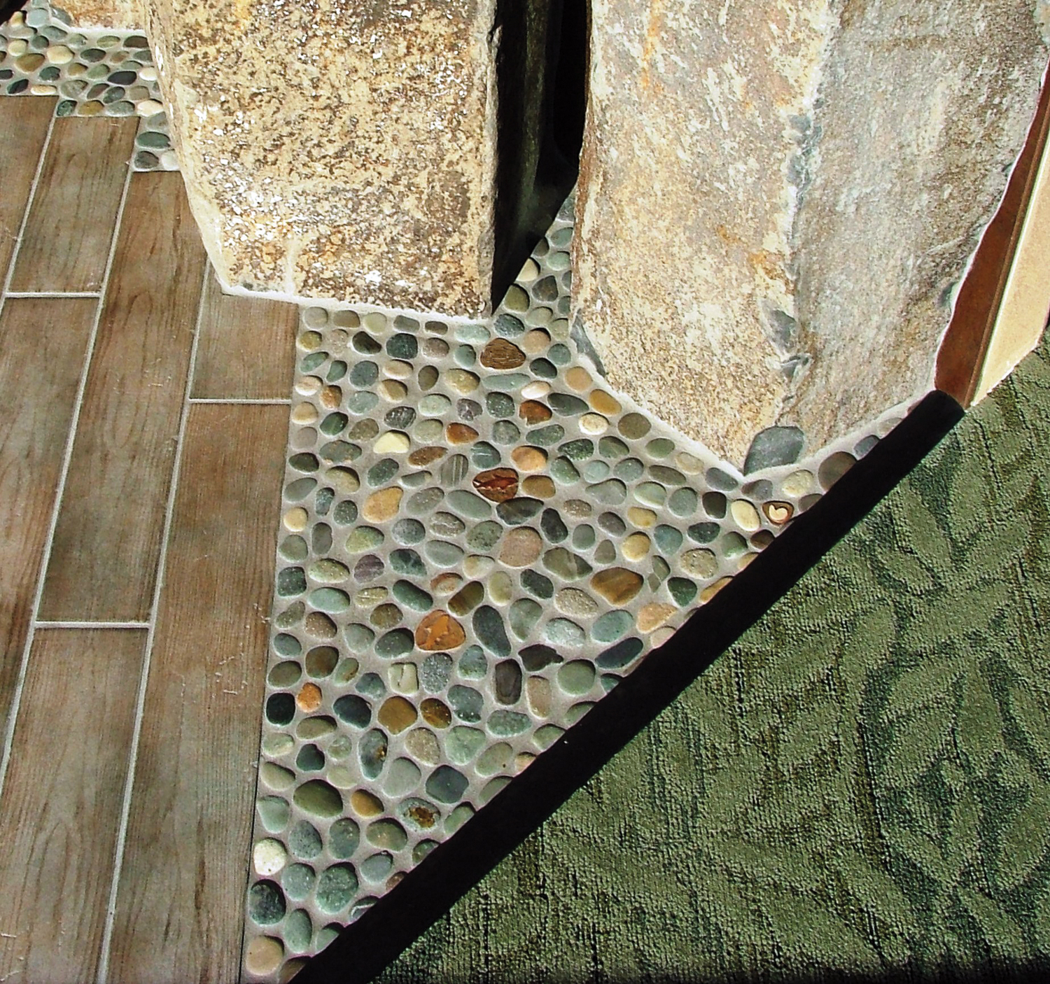 • No two pieces of natural stone are exactly alike. All tiles must be inspected prior to installation to ensure that no blending is required. If you see a particular pebble on the tile that is not to your liking, simply remove it from the mesh backing and replace with a pebble from one of your extra tiles.